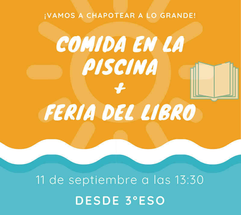 El sábado 11, a partir de 3° ESO, quedaremos en el club a las 13:30 para comer en la piscina. A las 17:30 h. tendremos formación y después iremos a la feria del libro en el Retiro.