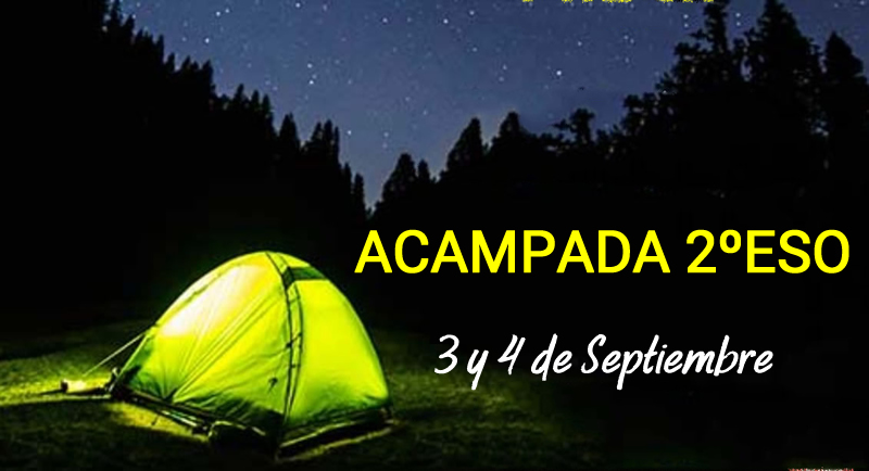 2ºESO arranca el nuevo curso con una acampada en Las Lomas, C/Sancho Rosa, 55. Fuente del Fresno (Mapa). Saldremos el viernes a las 16:00 h. y volveremos el sábado a las 13:30 h. Llevar cena y desayuno y... ¡preparaos para muchas sorpresas! Precio: 2 € para gasolina.