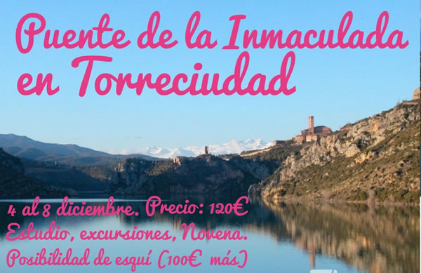 ¡Nos vamos unos días de convivencia a Torreciudad! Nos esperan unos días emocionantes en la zona de los Pirineos y con montones de actividades: excursiones, estudio, tertulias interesantísimas y ... lo mejor, ¡volvernos a ver con amigas de otros clubs! Precio: 120 €. Para quien lo desee, habrá posibilidad de ir a esquiar (100 € más)