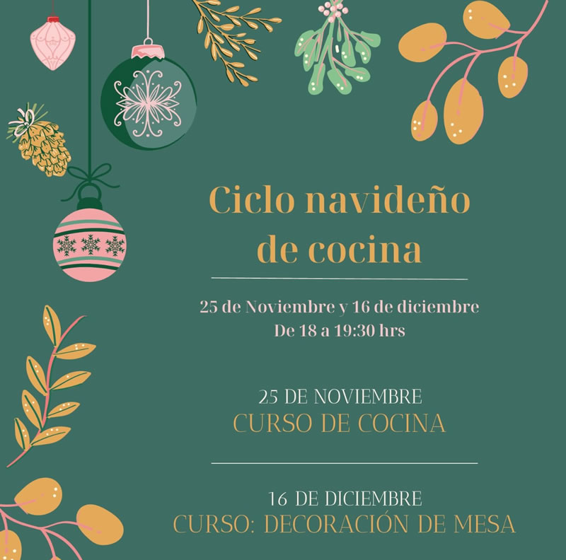 Las madres del club podrán participar los días 25 de Noviembre y 16 de Diciembre, de 18:00 a 19:30 h. del Ciclo navideño de cocina y decoración. Precio: 5 €.