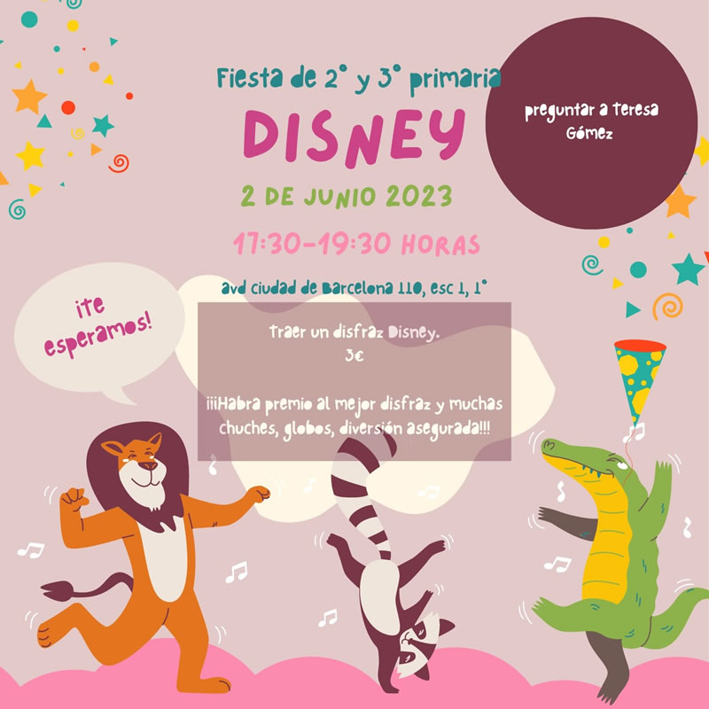 El viernes 2 de Junio de 17:30 a 19:30 h. tendremos una fiesta Disney de bienvenida para 2º y 3º de Primaria. Todo el club disfrutará con ellas de los juegos, chcuches, fiesta de disfraces con premio al mejor disfraz Disney... ¡Diversión asegurada!
